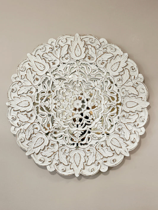 Mandala Redonda de Madera Tallada a Mano con Espejo