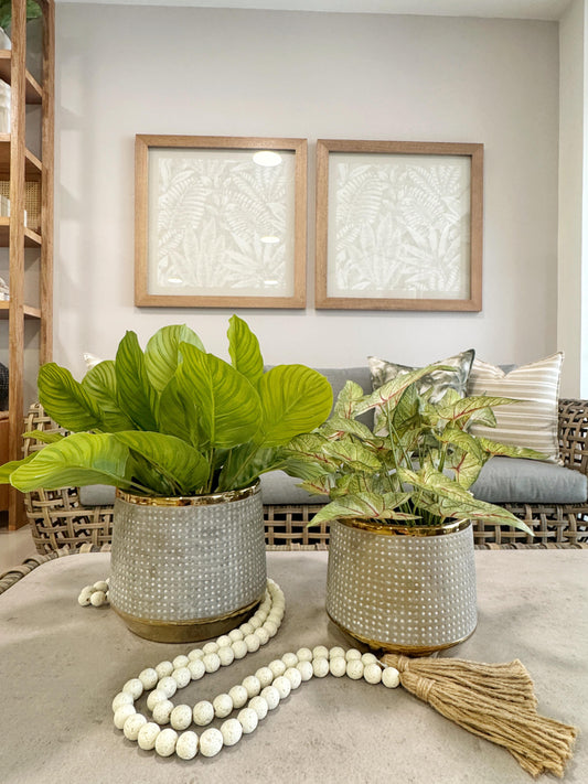Jarrones de Resina Gris con Borde Dorado