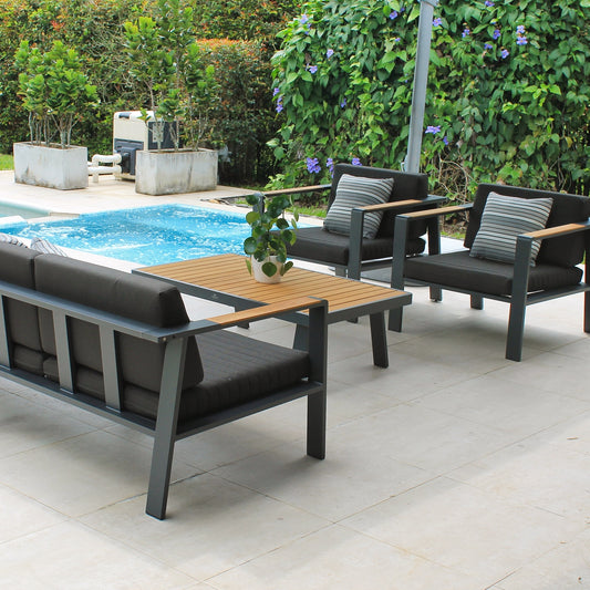Muebles perfectos para espacios exteriores protegidos como terrazas cubiertas, balcones techados y patios con techo. Diseñados para resistir la humedad pero protegidos de la lluvia directa y el sol intenso.
