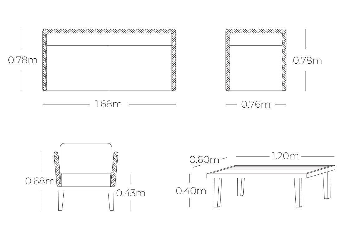- Measurements: Chairs: 72 x 92 x 97 cm. - Side table: Ø 60 x 50 cm.