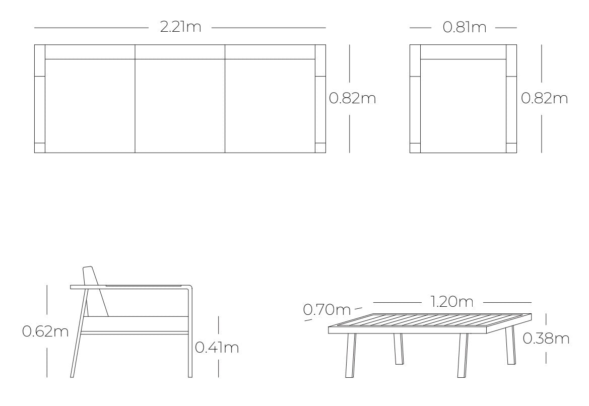 - Measurements: Chairs: 72 x 92 x 97 cm. - Side table: Ø 60 x 50 cm.
