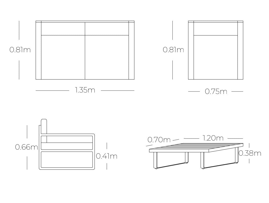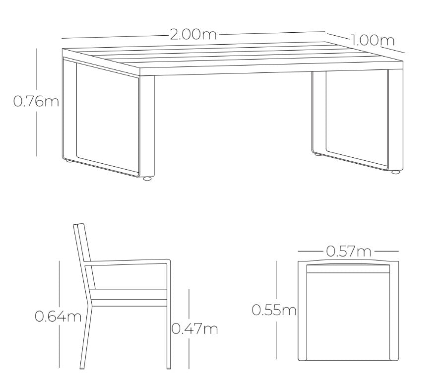 - Measurements: Chairs: 72 x 92 x 97 cm. - Side table: Ø 60 x 50 cm.