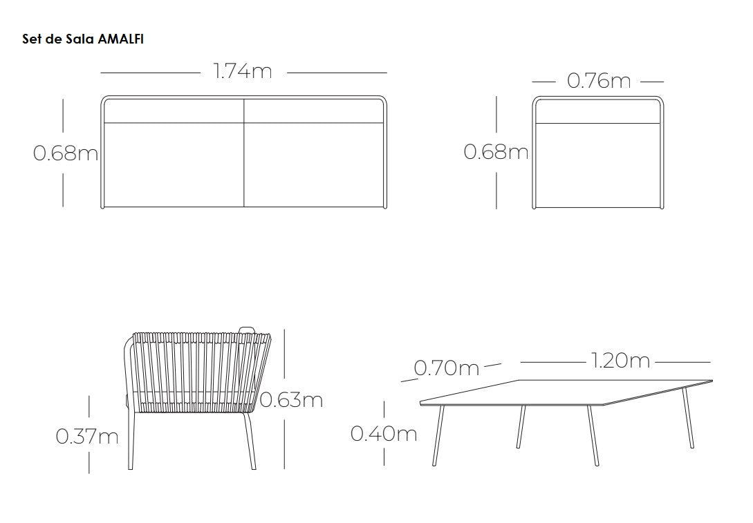 - Measurements: Chairs: 72 x 92 x 97 cm. - Side table: Ø 60 x 50 cm.