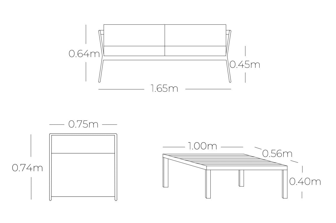 - Measurements: Chairs: 72 x 92 x 97 cm. - Side table: Ø 60 x 50 cm.