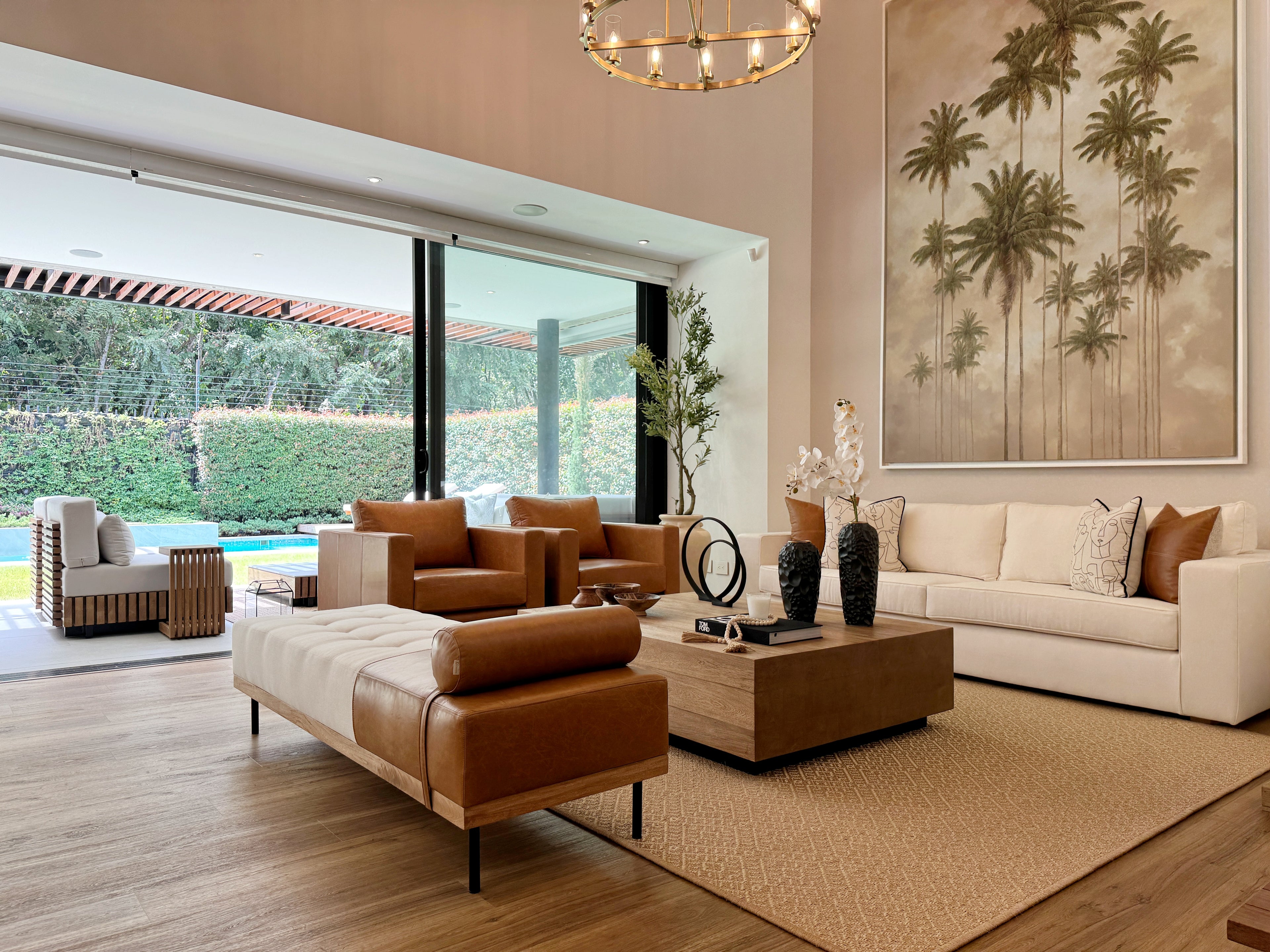 Diseñamos y fabricamos el mobilairo a la medida, utilizando materiales como el flor morado, hierro, cuero y firbras naturales que nos permitieron crear un espacio lleno de calidez y armonía.