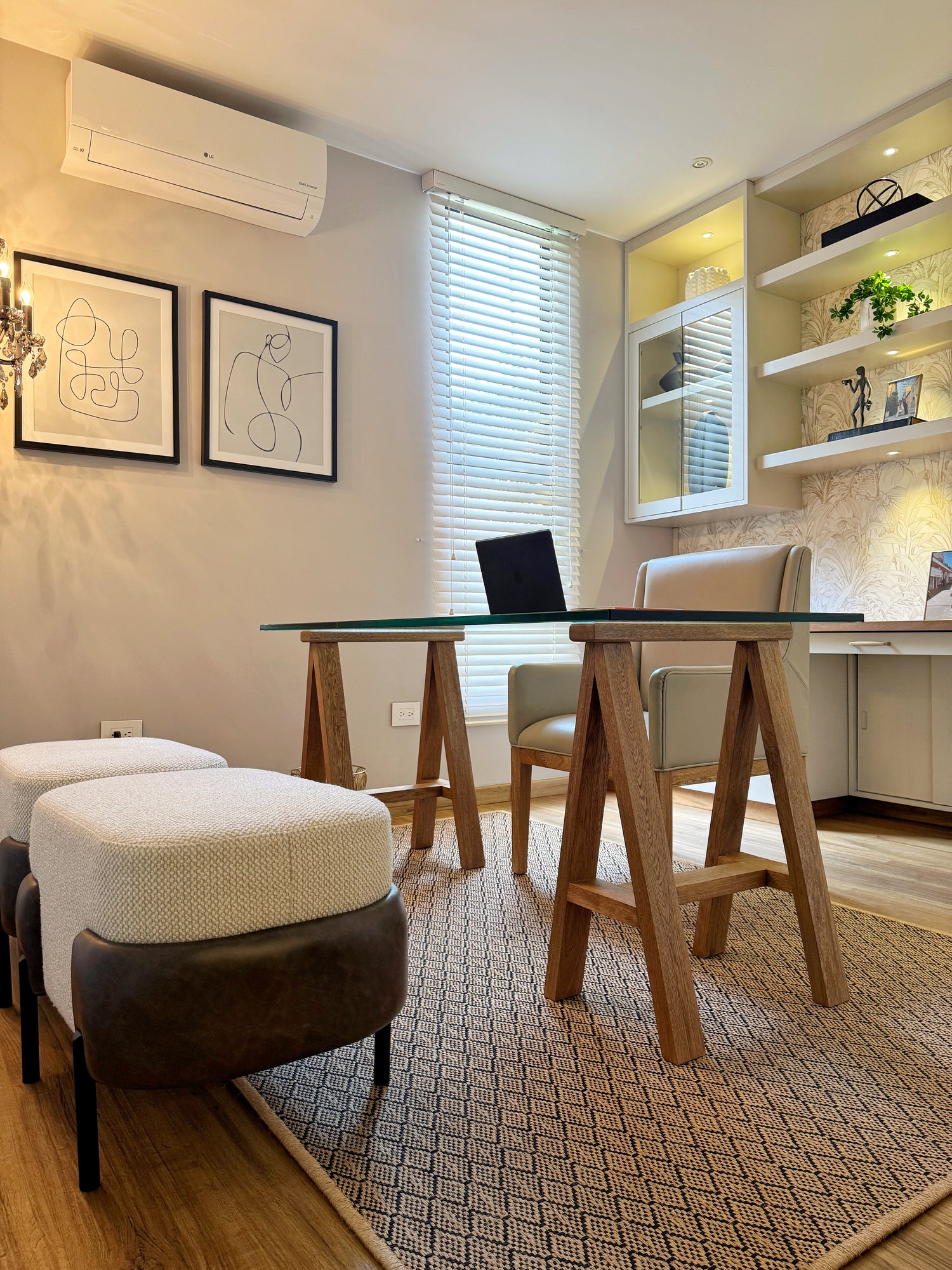 Creamos un espacio lleno de serenidad y elegancia, con una paleta de colores muy calidad y fresca que permite a nuestro cliente trabajar en perfecta armonia.