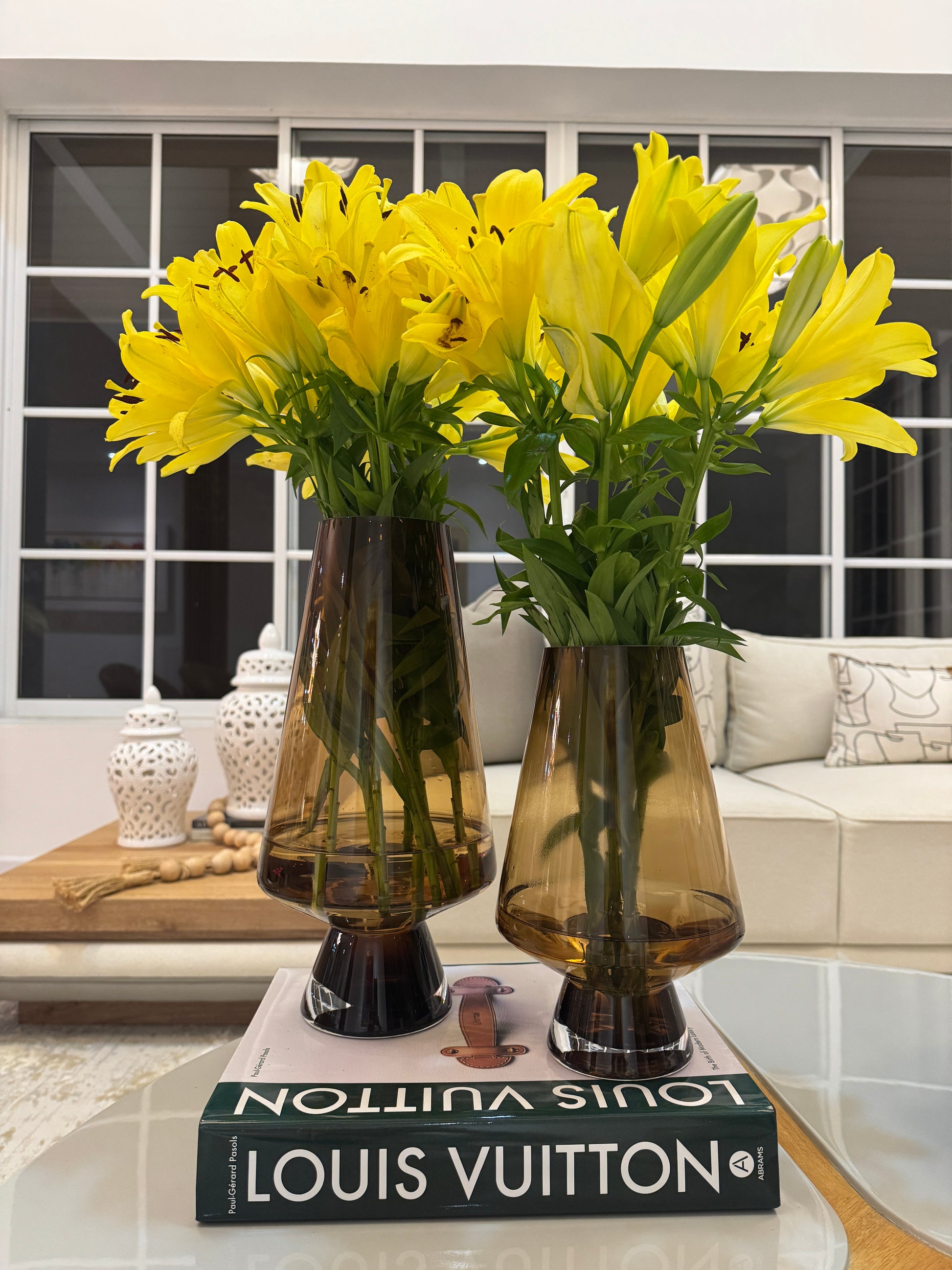 - Medidas: Grande: Ø 17 (boca Ø 10) x 35.5 cm. - Pequeño: Ø 16 (boca Ø 9) x 26 cm.