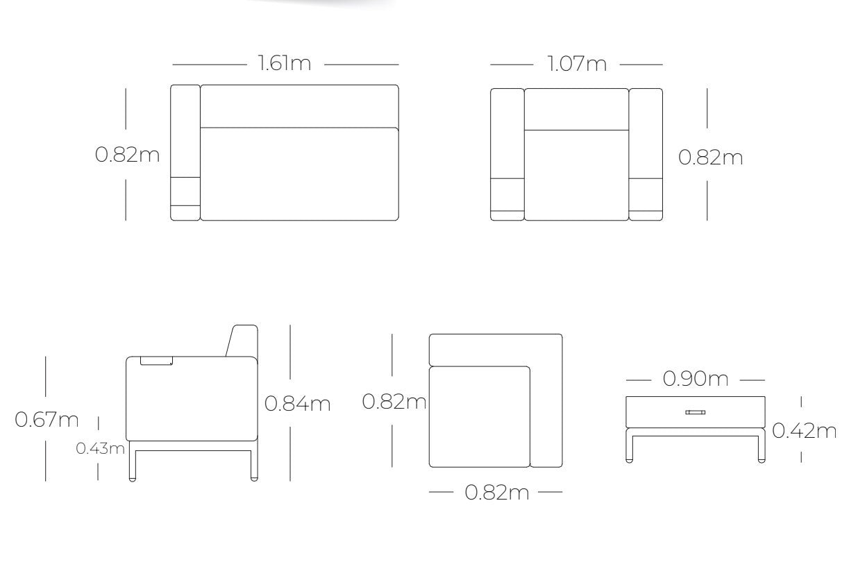 - Bandejas de aluminio en el puf y en los apoya brazos.