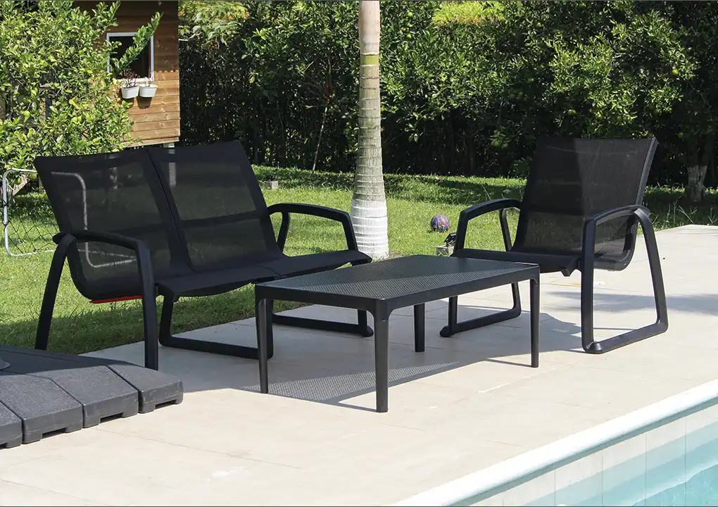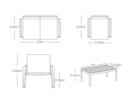 - Opción 1: Un sofá doble, 2 sofás sencillos y mesa de centro.