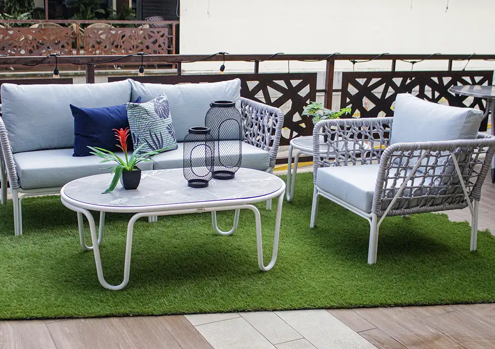 - Estructura sala en aluminio color taupe o white grey.