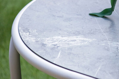 - Mesas con recubrimiento cerámico en el vidrio.