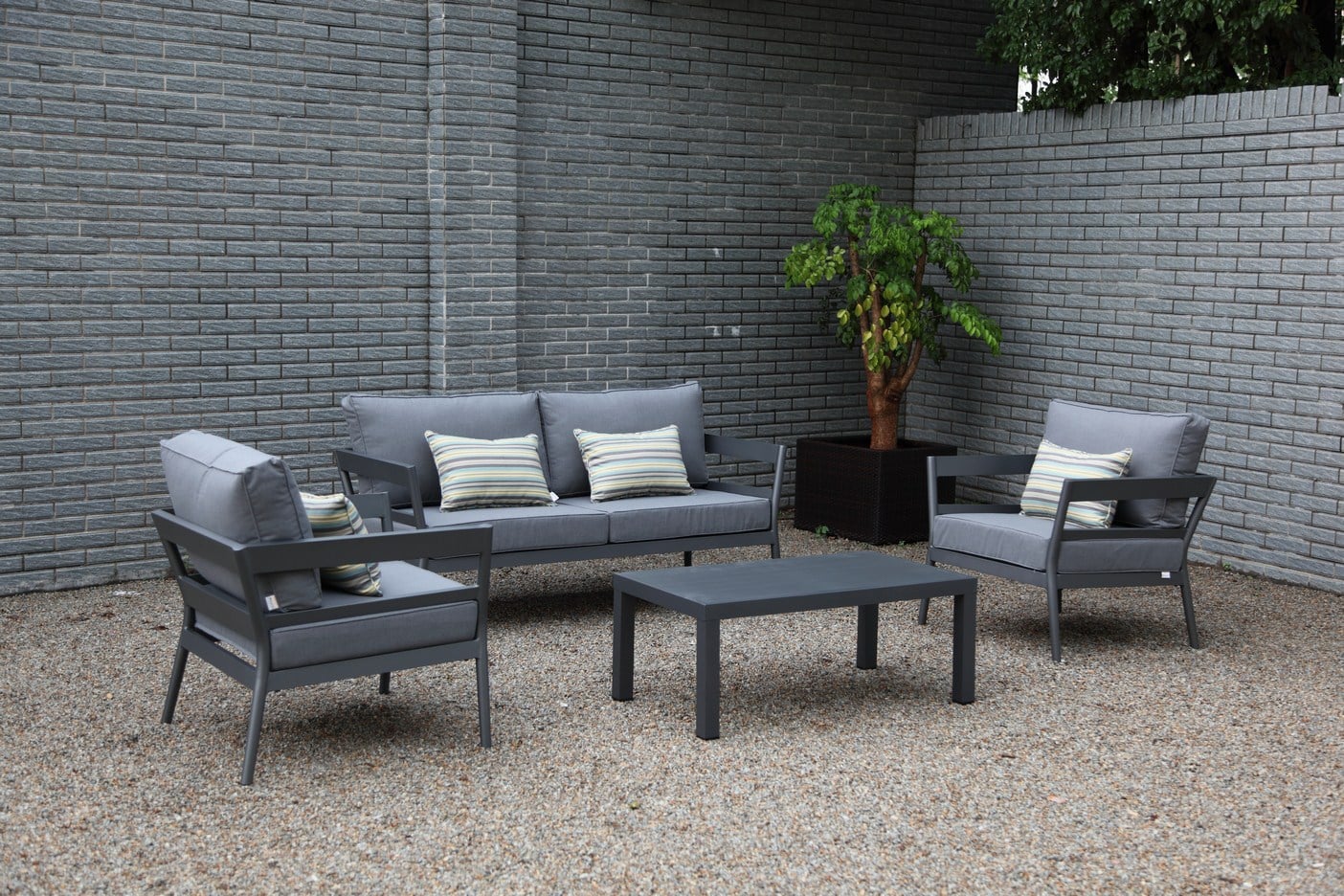 - Cojines en color taupe o gris oscuro, de acuerdo al marco.