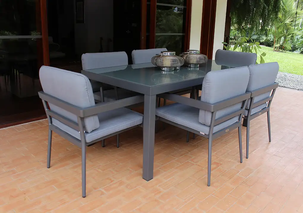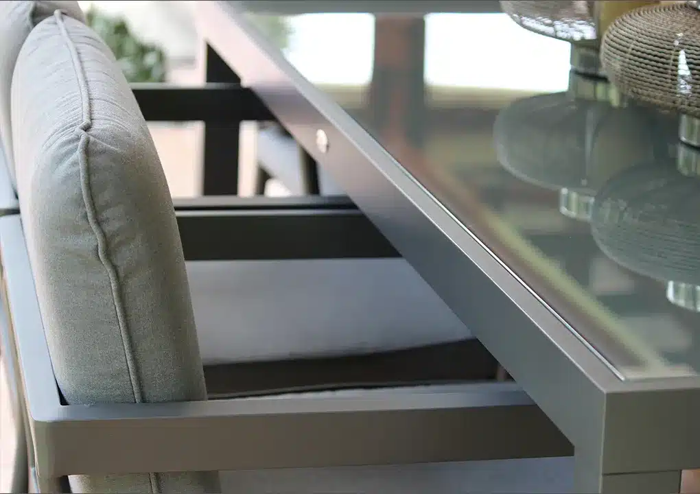 - Superficie de la mesa de comedor en vidrio templado.