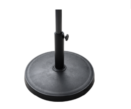 - NO incluye base; es compatible con base en resina y base en acero. Para que la sombrilla tenga estabilidad se debe adquirir la base o anclarla al piso. Así la sombrilla se ponga entre una mesa, debe llevar base o fijarse al piso, ya que el peso al inclinar la parte superior, va a hacer que pierda estabilidad.